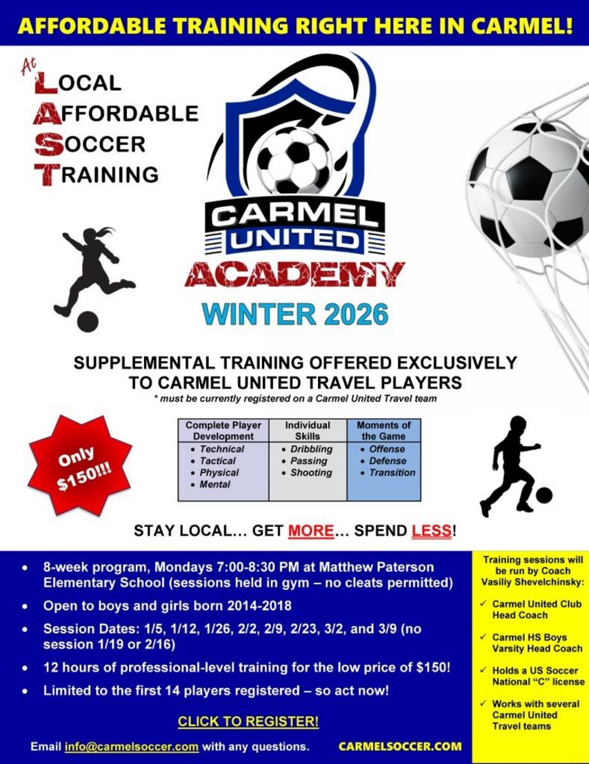 Academy Training - Winter 2026 (CARMEL UNITED TRAVEL PLAYERS ONLY)